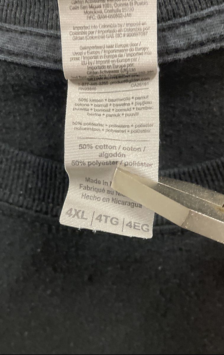 Condition: Good. This shirt is pre-owned and shows moderate signs of wash and wear. The black fabric has some even fading and there is light pilling, especially under the arms. The front and back graphics are in very good shape with minimal wear. No holes, stains, or major flaws were found.