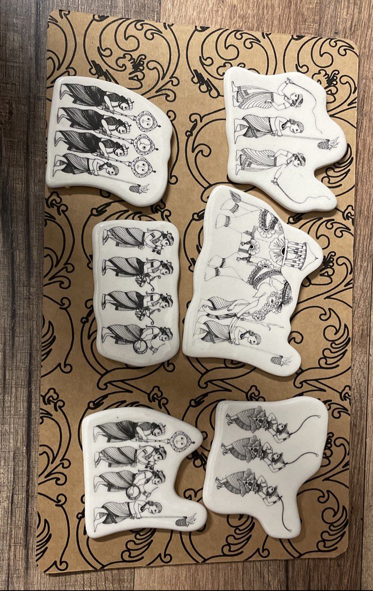 19pc Sri Lanka Kandy Perahera Festival Elephant Magnet Set Black & White