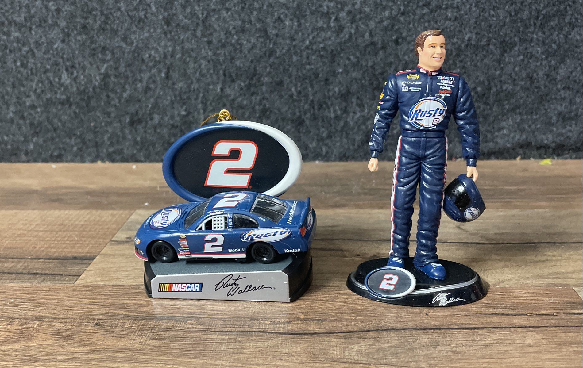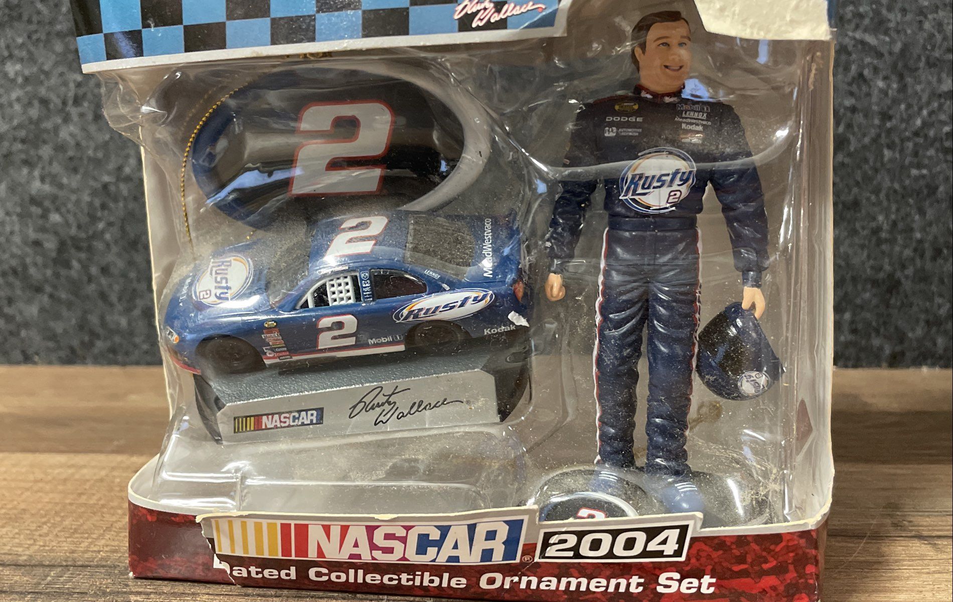 1. Rusty Wallace #2 Dated Collectible Ornament Set (2004, NASCAR) - Includes figure, #2 car, and #2 logo ornament.