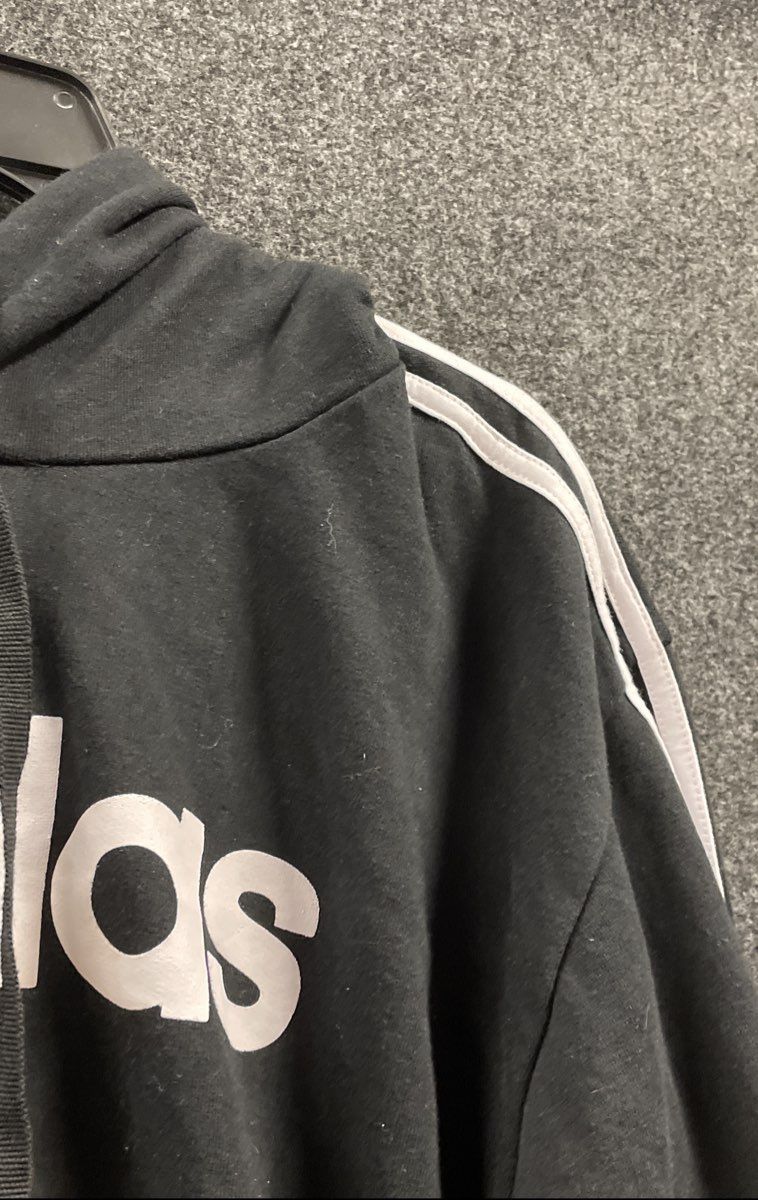 Adidas Men's Black Pullover Hoodie Sweatshirt 3 Stripe Spell Out Logo Sz 2XL