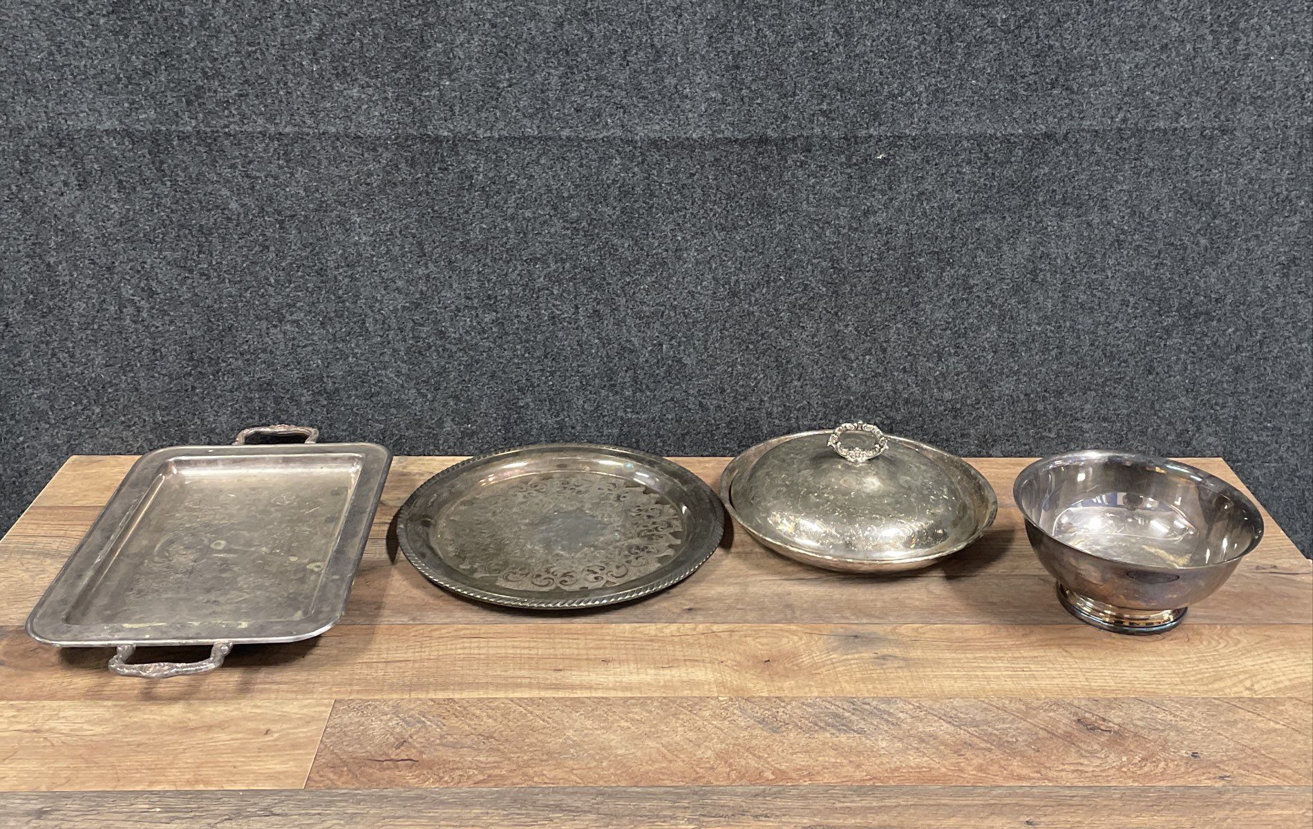 assorted Lot of Silver Plate Collectibles (Platter, Bowl)