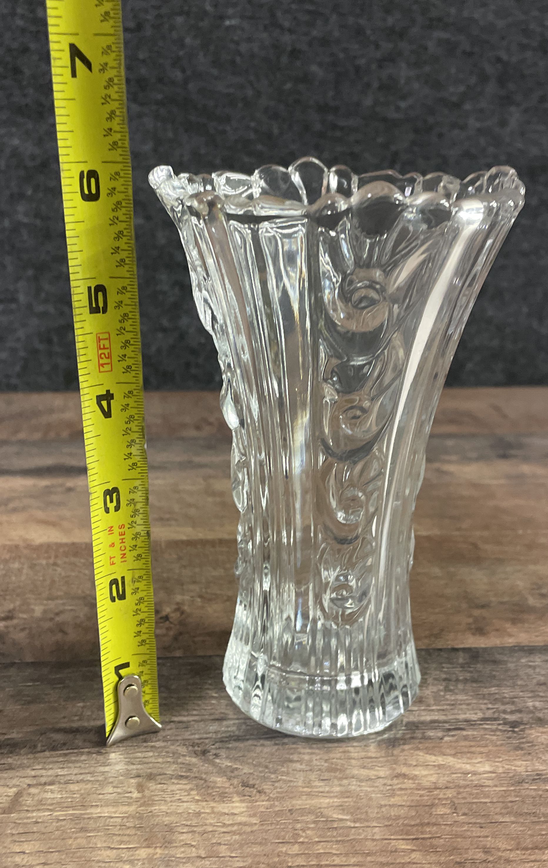 Borgonovo Italian Glass Vase Pressed Scroll Pattern Clear Vintage 5" Tall
