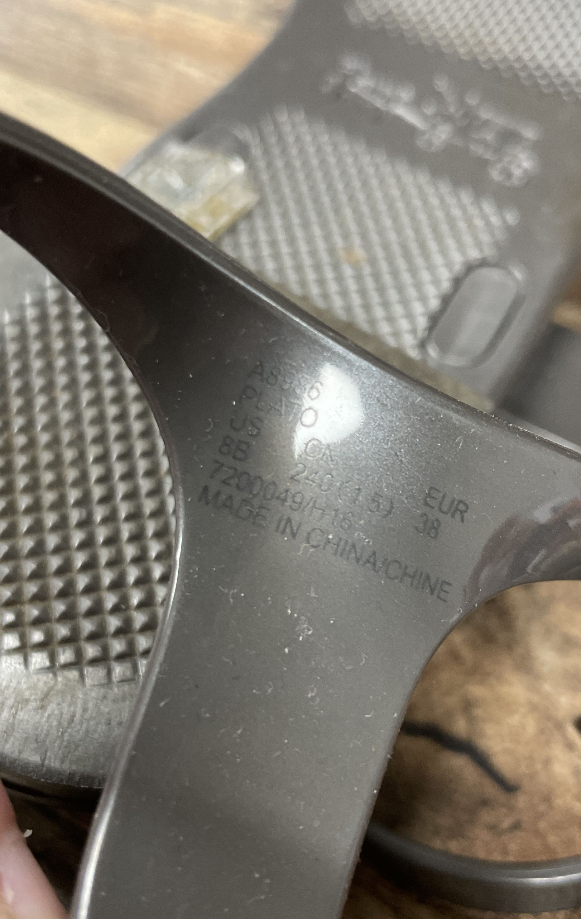 Condition: Good pre-owned condition. The uppers show light general wear but are free of major scuffs or damage. Outsoles exhibit moderate, even wear and some heel drag. The footbeds are clean with light impressions from use. Please note, there is some minor rust forming on one of the metal buckles, as detailed in the photos.