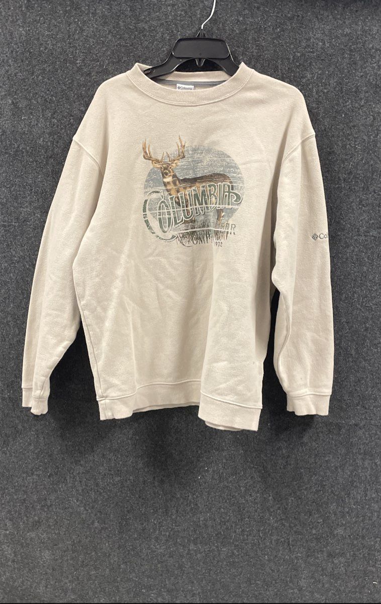 Columbia Men's Sweatshirt Beige Deer Graphic Crewneck Logo Size L
