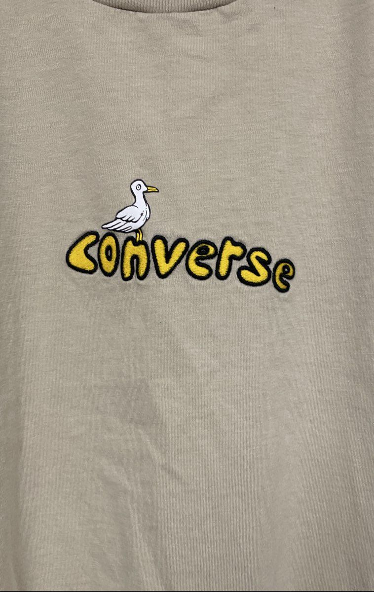 Converse Men's T-Shirt Tan Seagull Lighthouse Graphic Embroidered Logo Size L