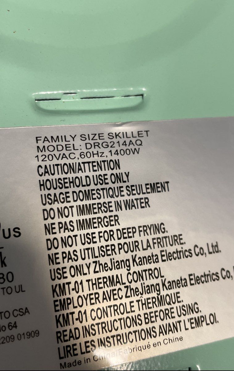Family Size Electric Skillet Model DRG214AQ