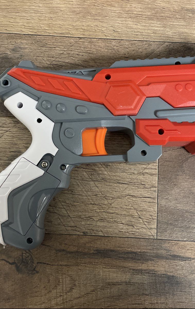 • Includes 4 Blasters and 4 Vests (Red, Blue, Green, Orange)