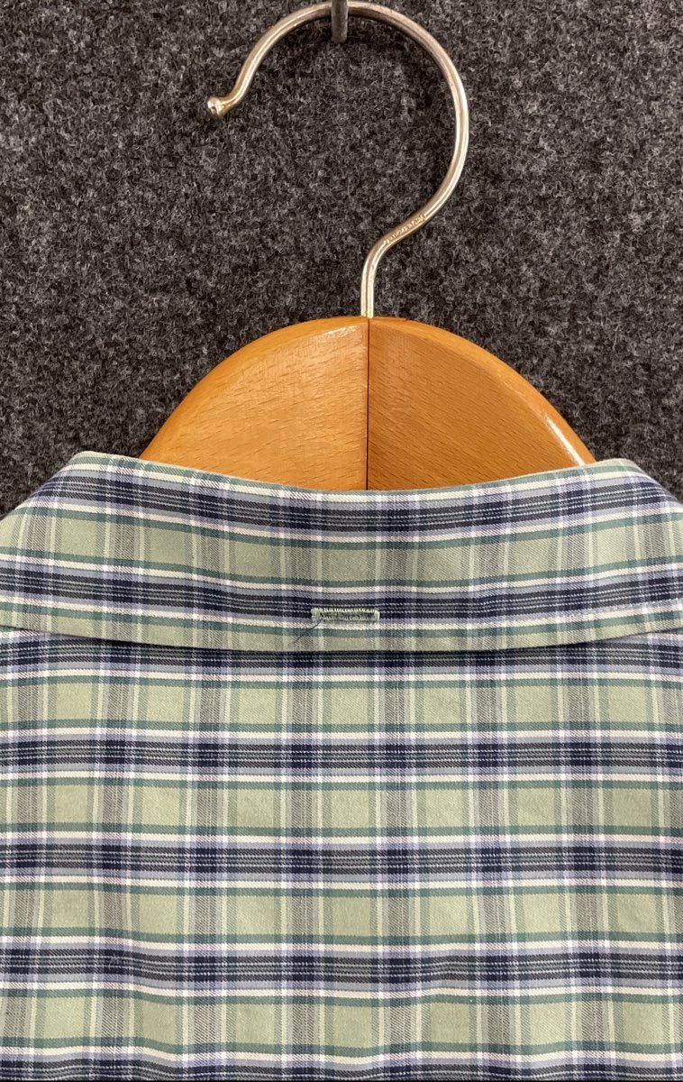 Wrinklefighter Shirt Green Blue Plaid Trim Fit