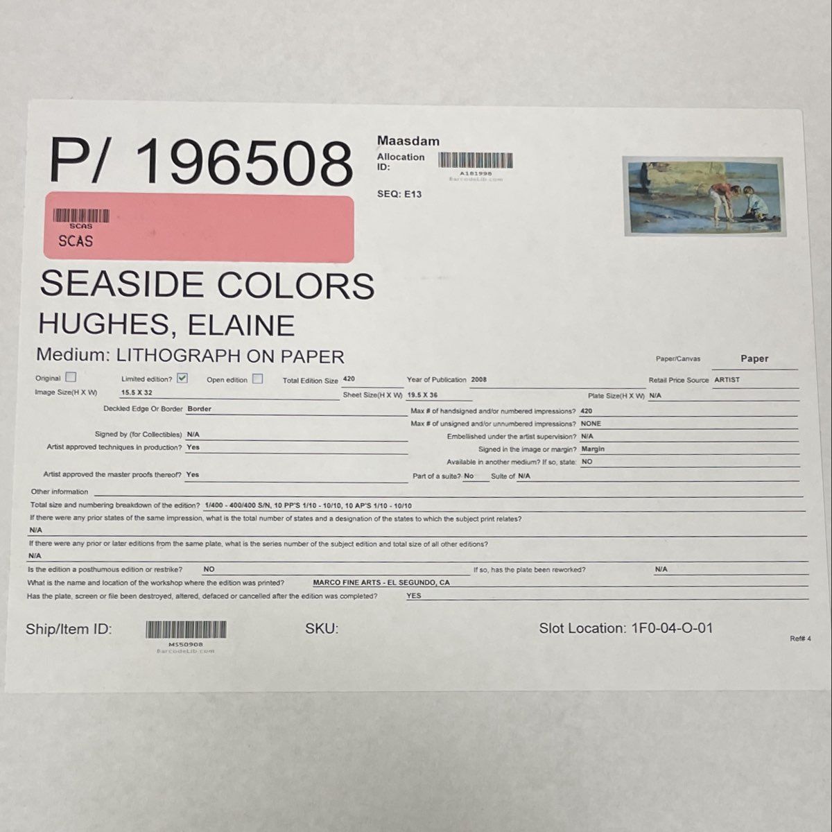 Elaine Hughes "Seaside Colors" Lithograph Print Children on Beach Signed 297/400