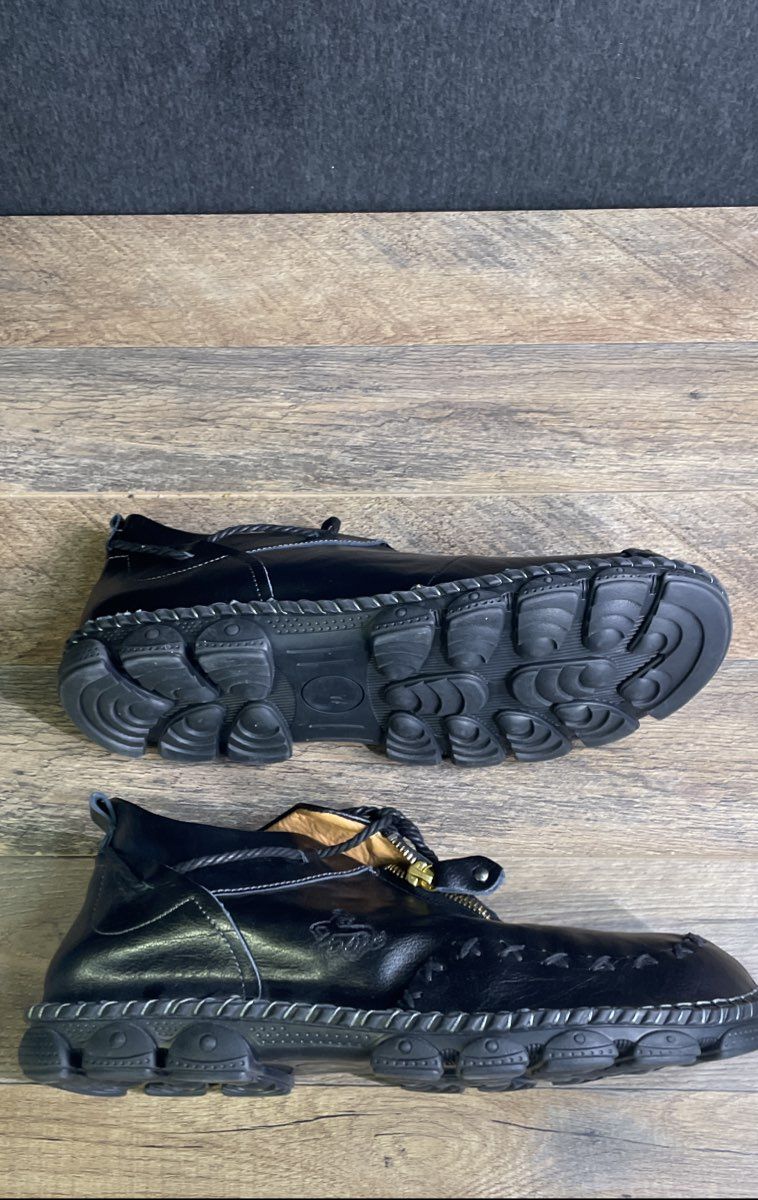Fashion Black Faux Leather Hand Stitched Zipper Chukka Boots Size EU 47 US 13