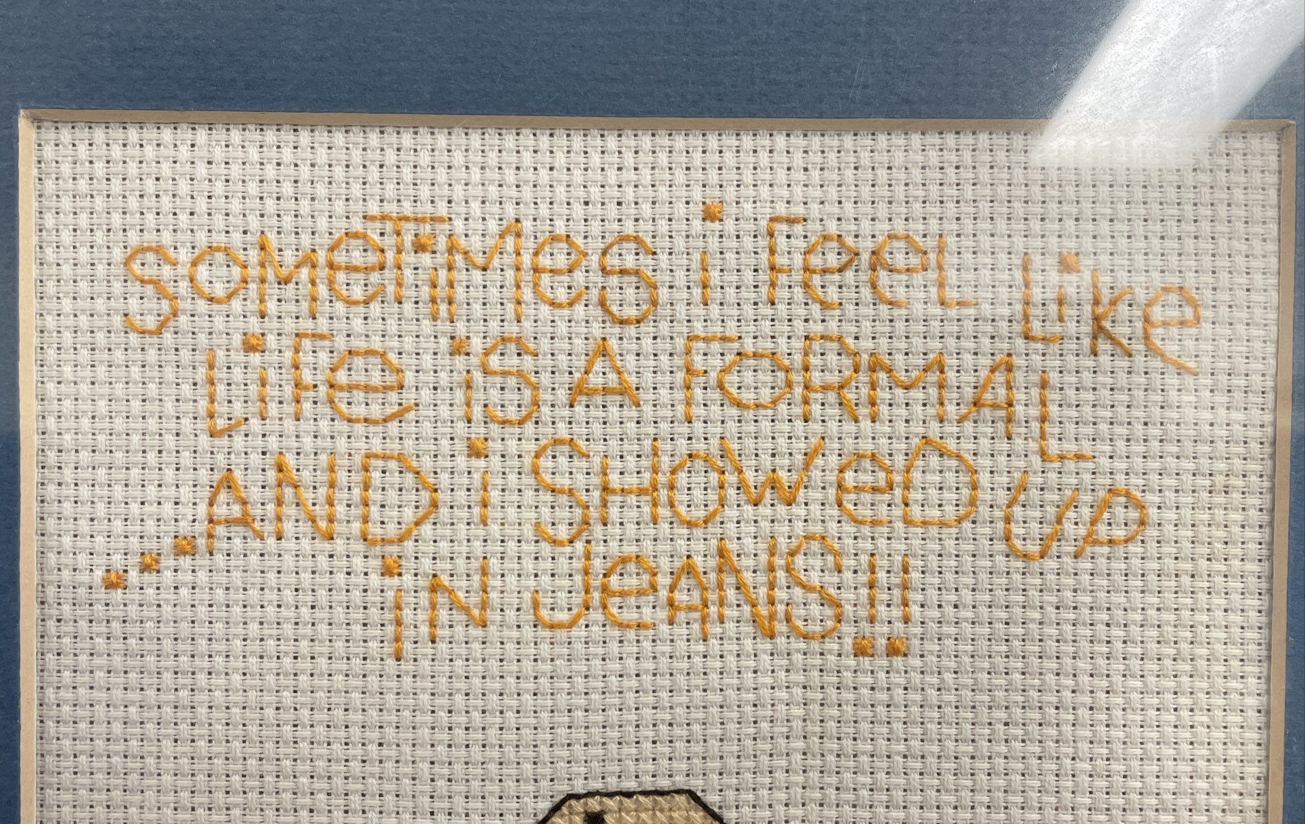 Framed Knit Square "Life is a Formal" Cartoon