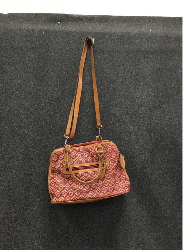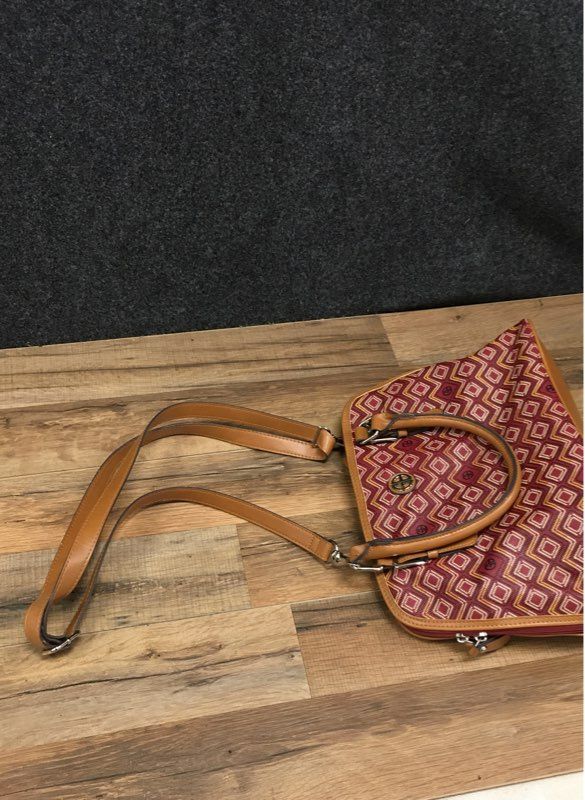 Giani Bernini Red Tan Graphic Canvas Satchel Crossbody Bag Leather Trim