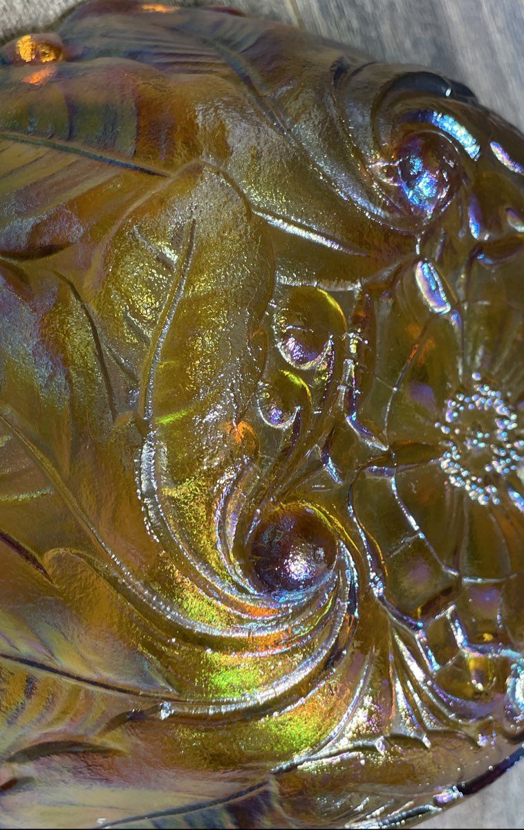 • A popular and collectible pattern from the 1970s carnival glass revival.