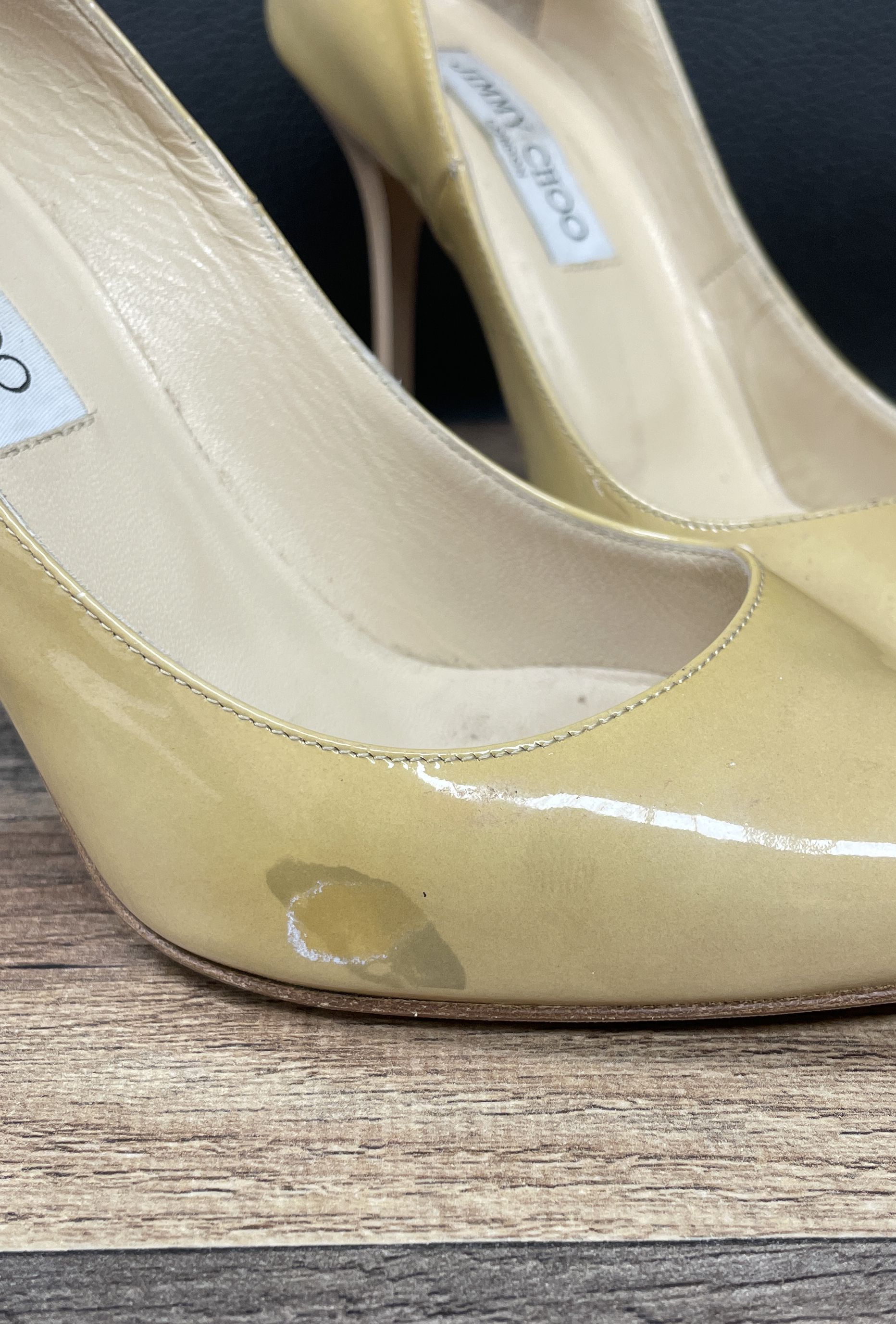 Jimmy Choo Nude Patent Leather Pointed Toe Pumps Heels Size 36.5 COA