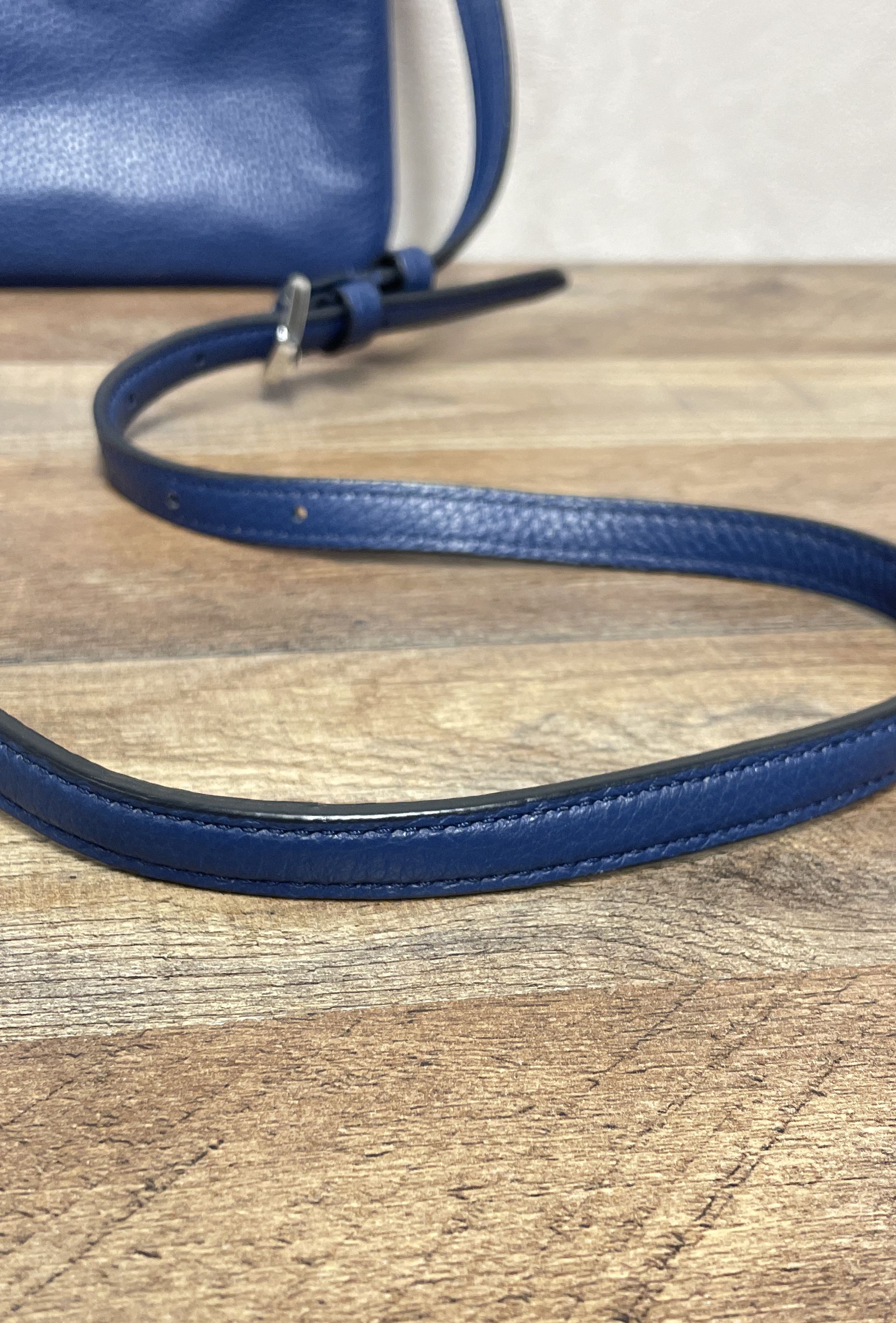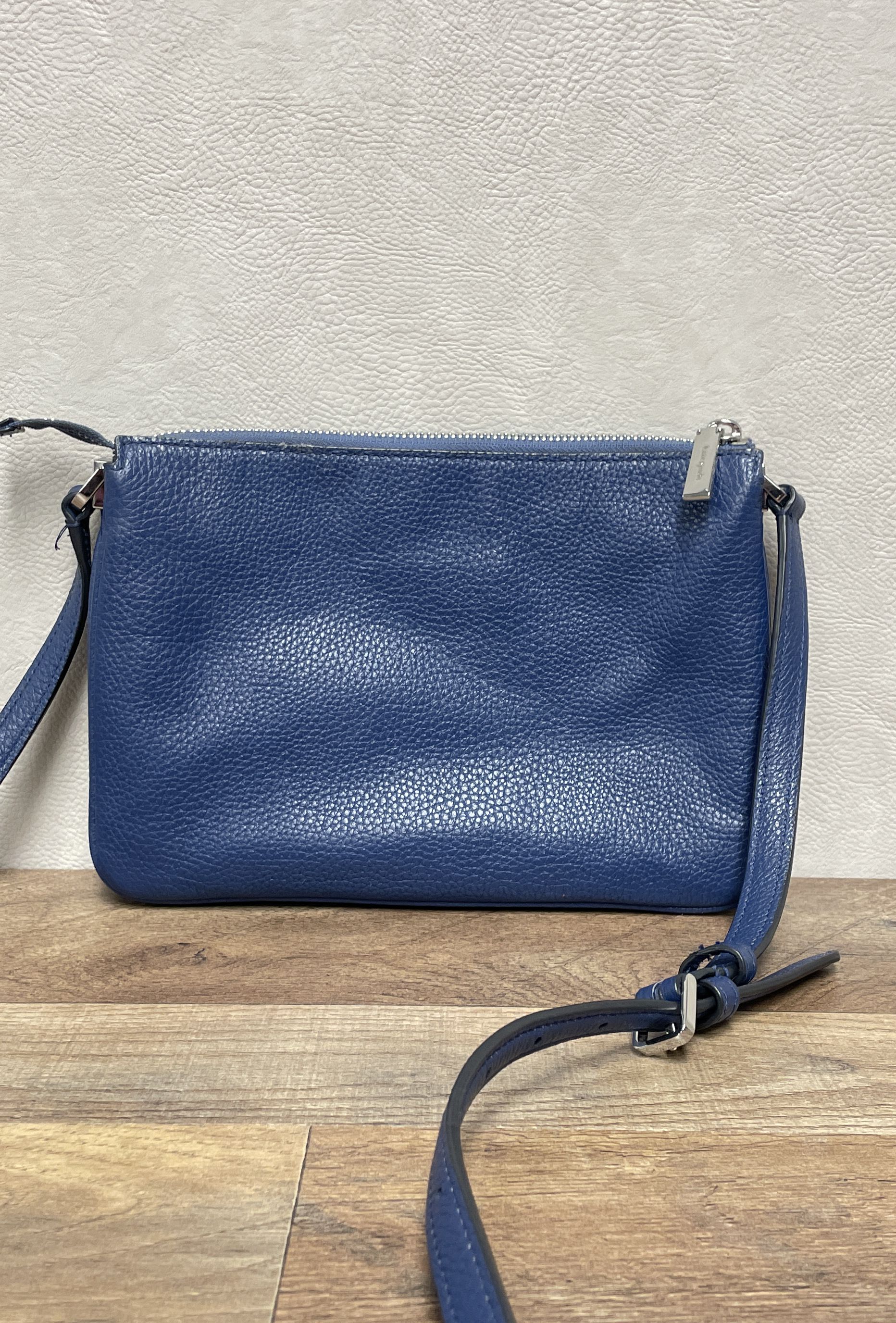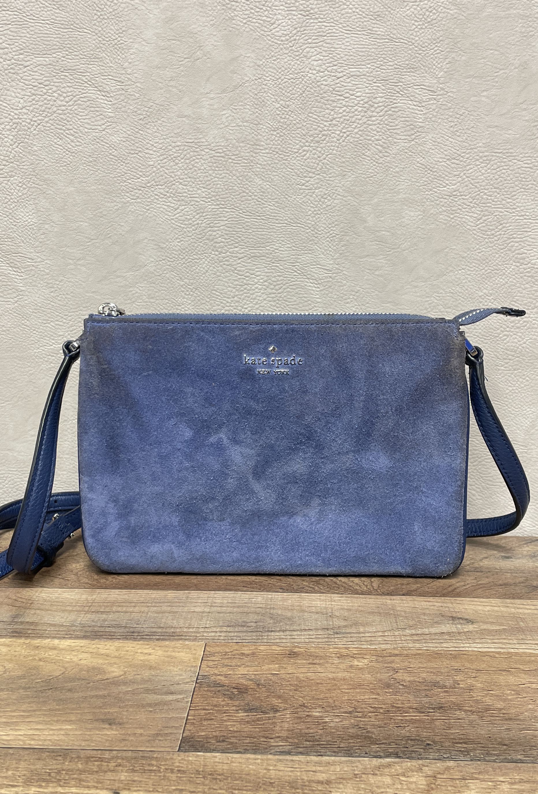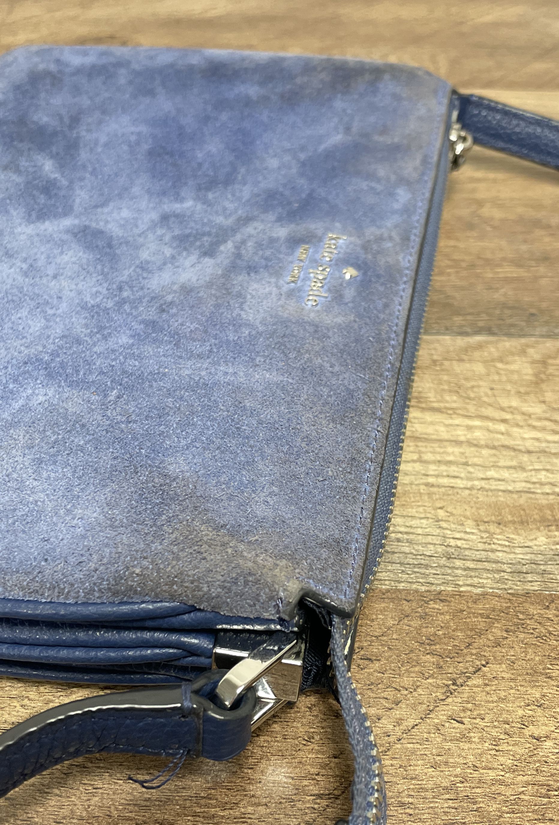 Kate Spade Blue Suede & Pebbled Leather Crossbody Shoulder Bag Silver Hardware