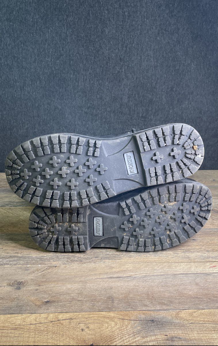 Condition: Good pre-owned condition. The boots show moderate signs of wear including creasing and scuffing on the uppers and toe boxes. The soles are dirty but have minimal tread wear and plenty of life left. The interior lining is intact and in good shape.