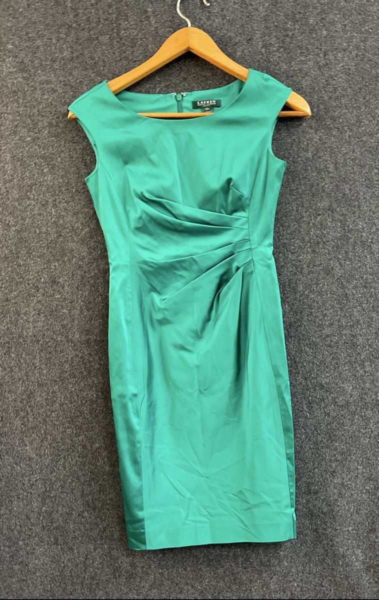 Lauren Ralph Lauren Women's Dress Green Sheath Cocktail Side Ruched Sleeveless 2