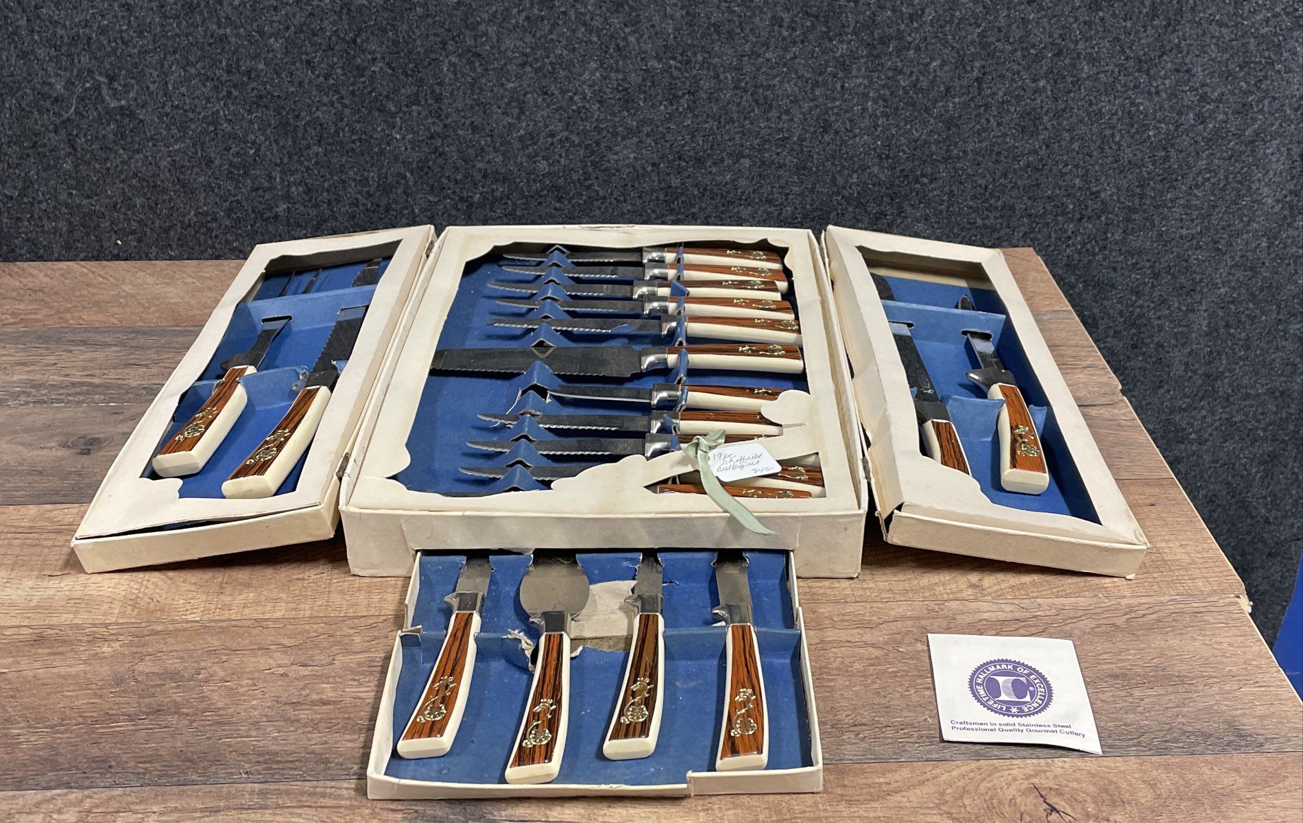 Lifetime Cutlery 19pc Gourmet Knife Bar Set Stainless Faux Wood Handle Vintage