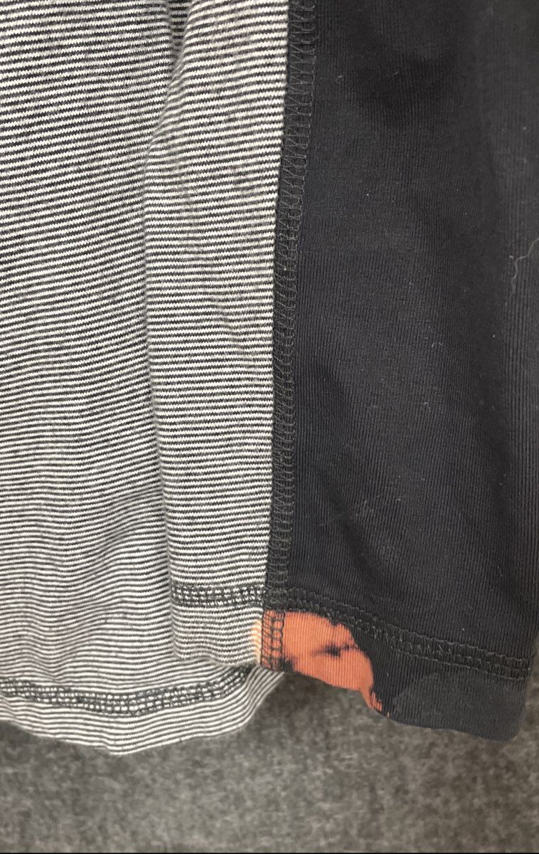 Condition: Good. Pre-owned with visible signs of use. There is a noticeable bleach-like discoloration spot on the lower left side's black panel, as pictured. Otherwise, the jacket shows light signs of general wear.