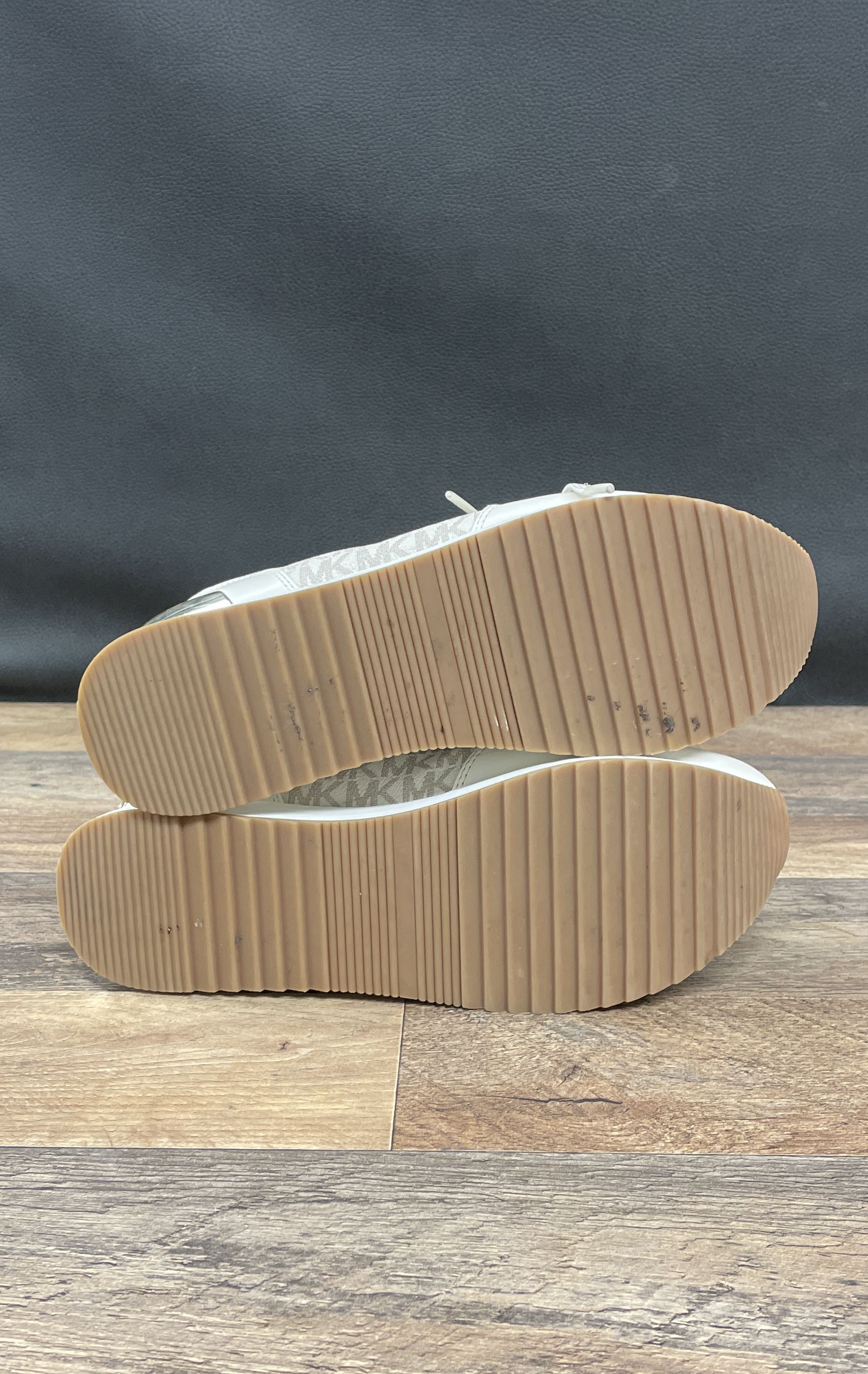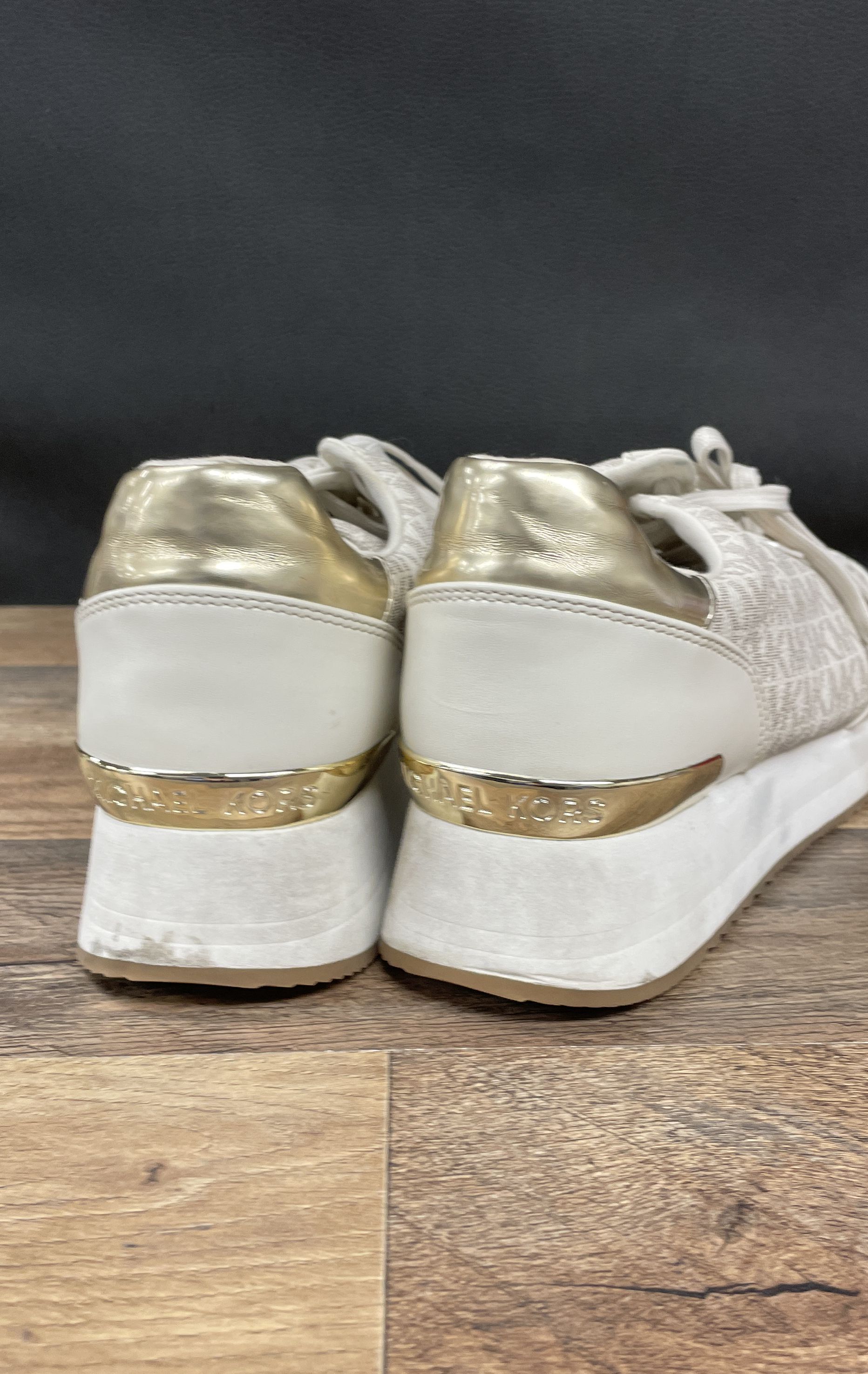 Michael Kors Monique MK Logo White Gold Platform Trainer Sneakers Size 9.5