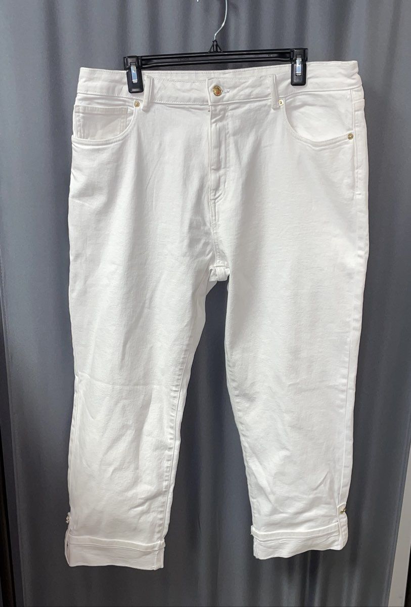 Michael Kors Women's White Capri Jeans Cropped Cuffed Size 16