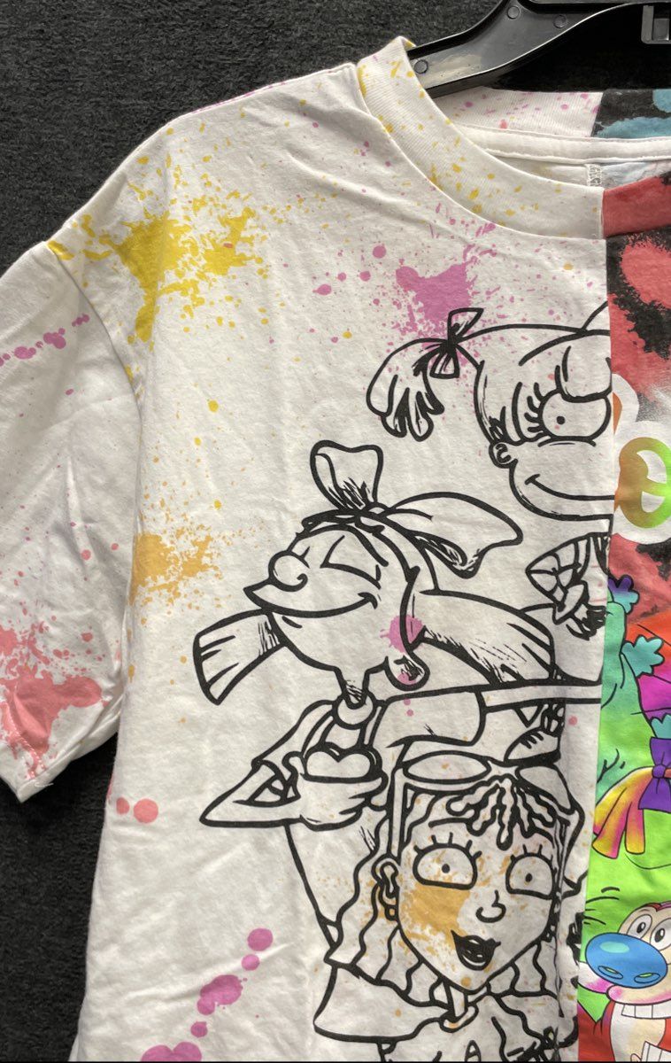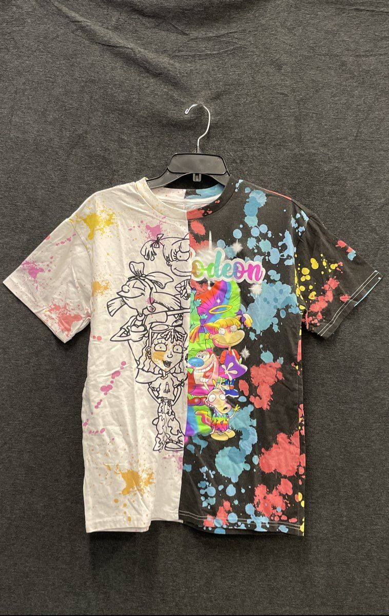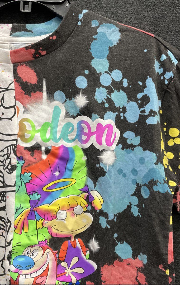 Nickelodeon 90s Cartoons Rugrats Ren Stimpy Split Dye T-Shirt Sz S