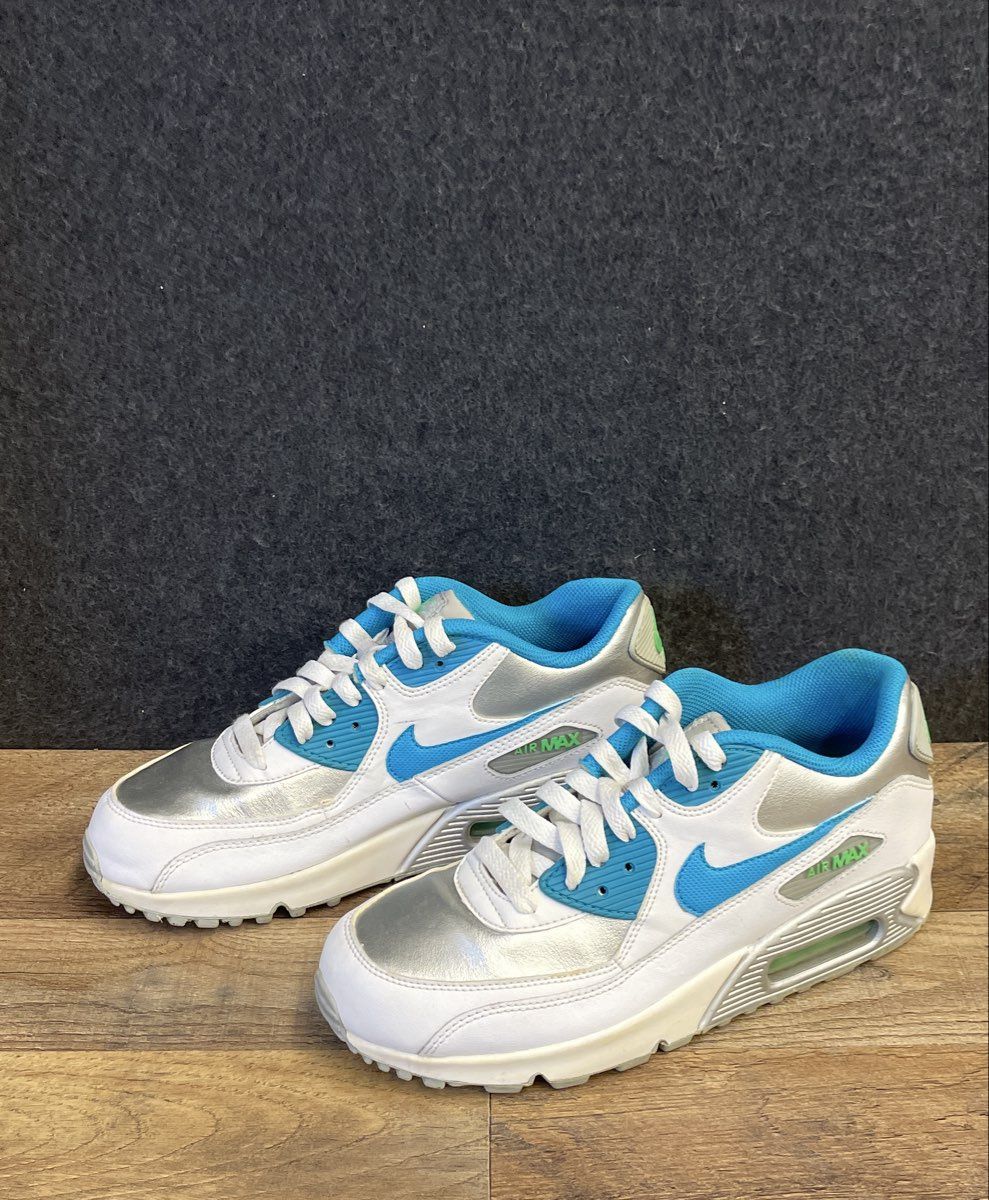 Nike Air Max 90 Leather GS White Metallic Silver Blue Sneaker Youth Size 6Y