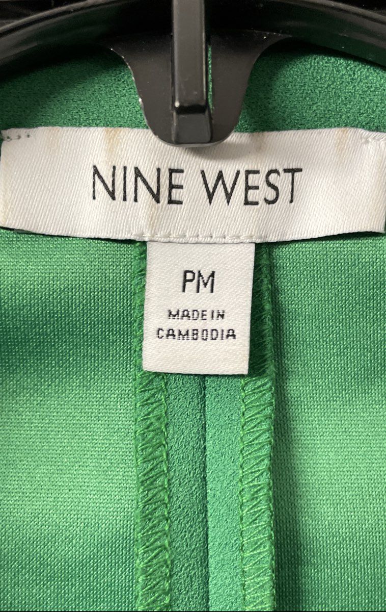 Nine West Women's Green Cropped Open Front Blazer Jacket Ruched Sleeve Sz PM