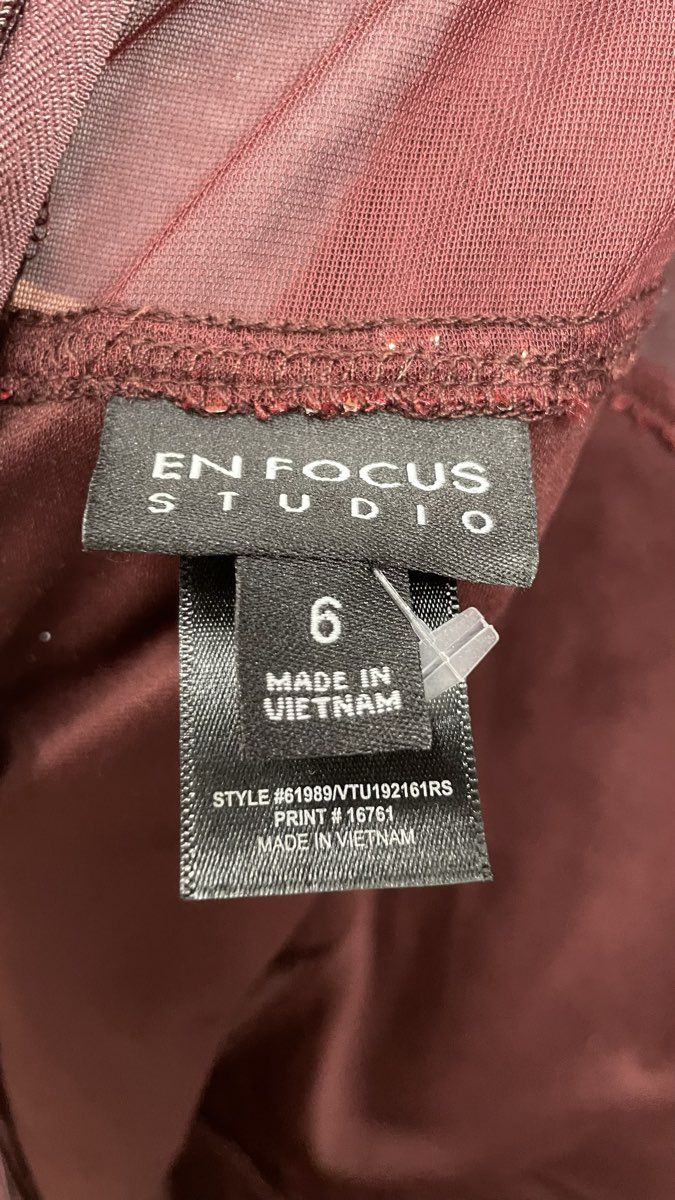 NWT En Focus Studio Women's Dress Maroon Lace Sequin Illusion Neck Midi Sz 6