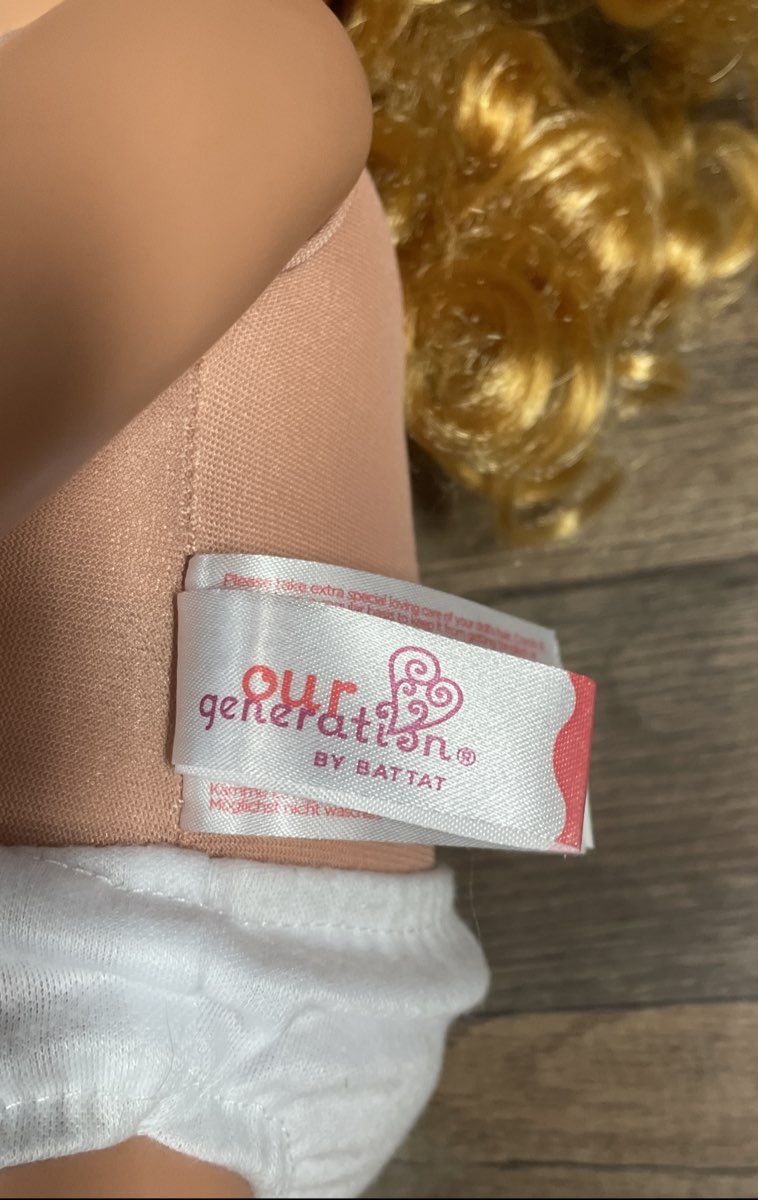 2. Our Generation Doll with curly strawberry-blonde hair, wearing white underwear.