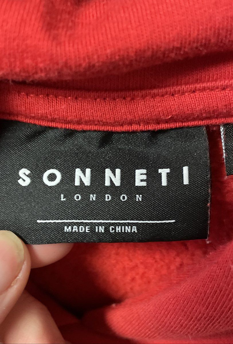 A classic red pullover hoodie from Sonneti London. This sweatshirt is crafted from a soft cotton-polyester blend fleece and features the brand's logo printed in white on the chest. It has a standard fit with a front kangaroo pocket and ribbed trim at the cuffs and hem for comfort.