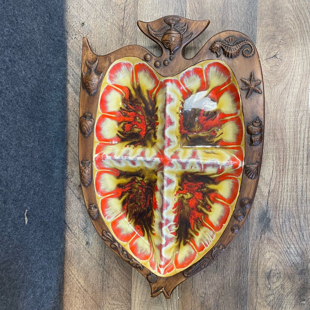 Treasure Craft Fish Chip & Dip Glaze Pottery Divided Plate