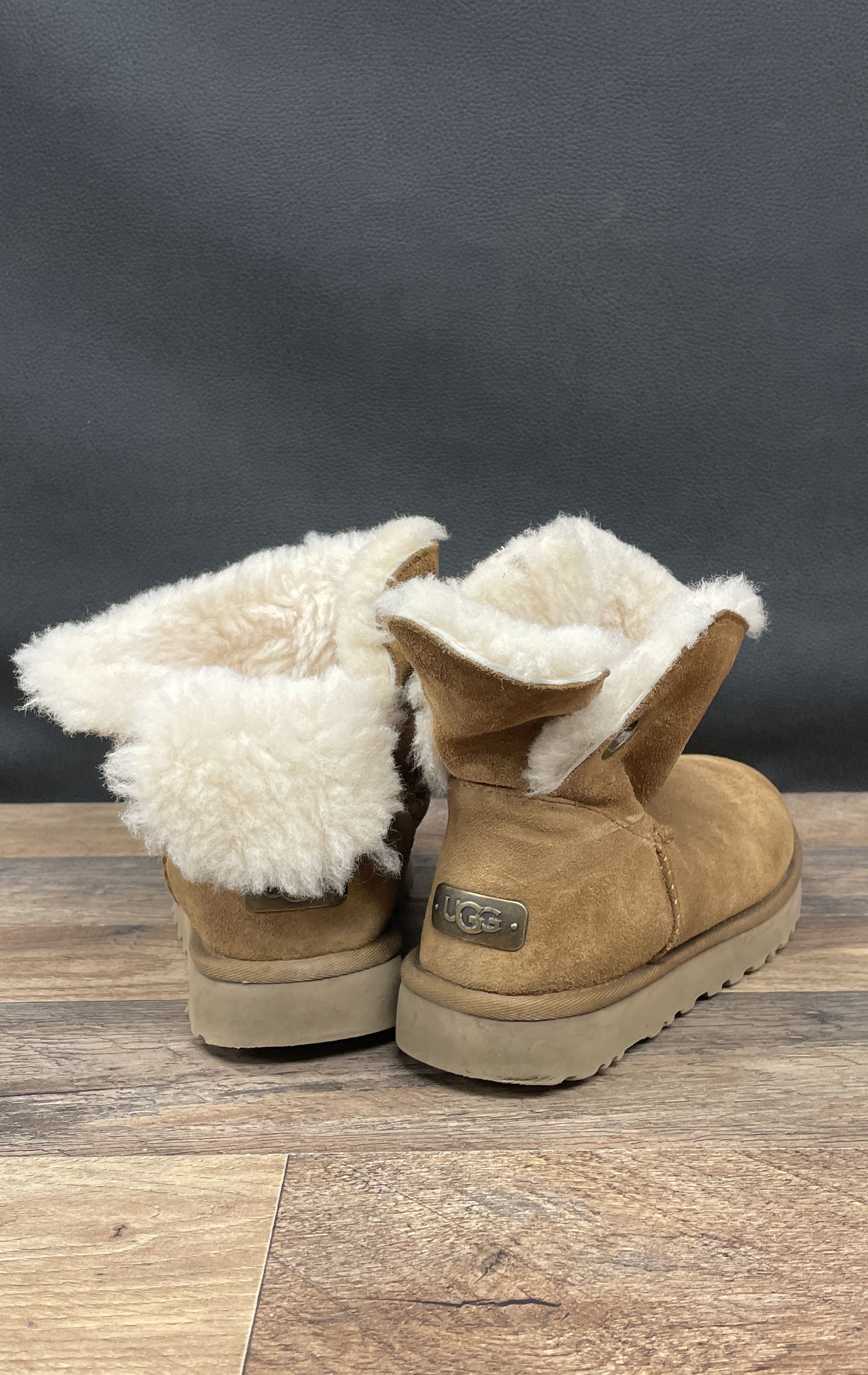 UGG Bailey Button Chestnut Suede Shearling Ankle Boots Womens Size 7