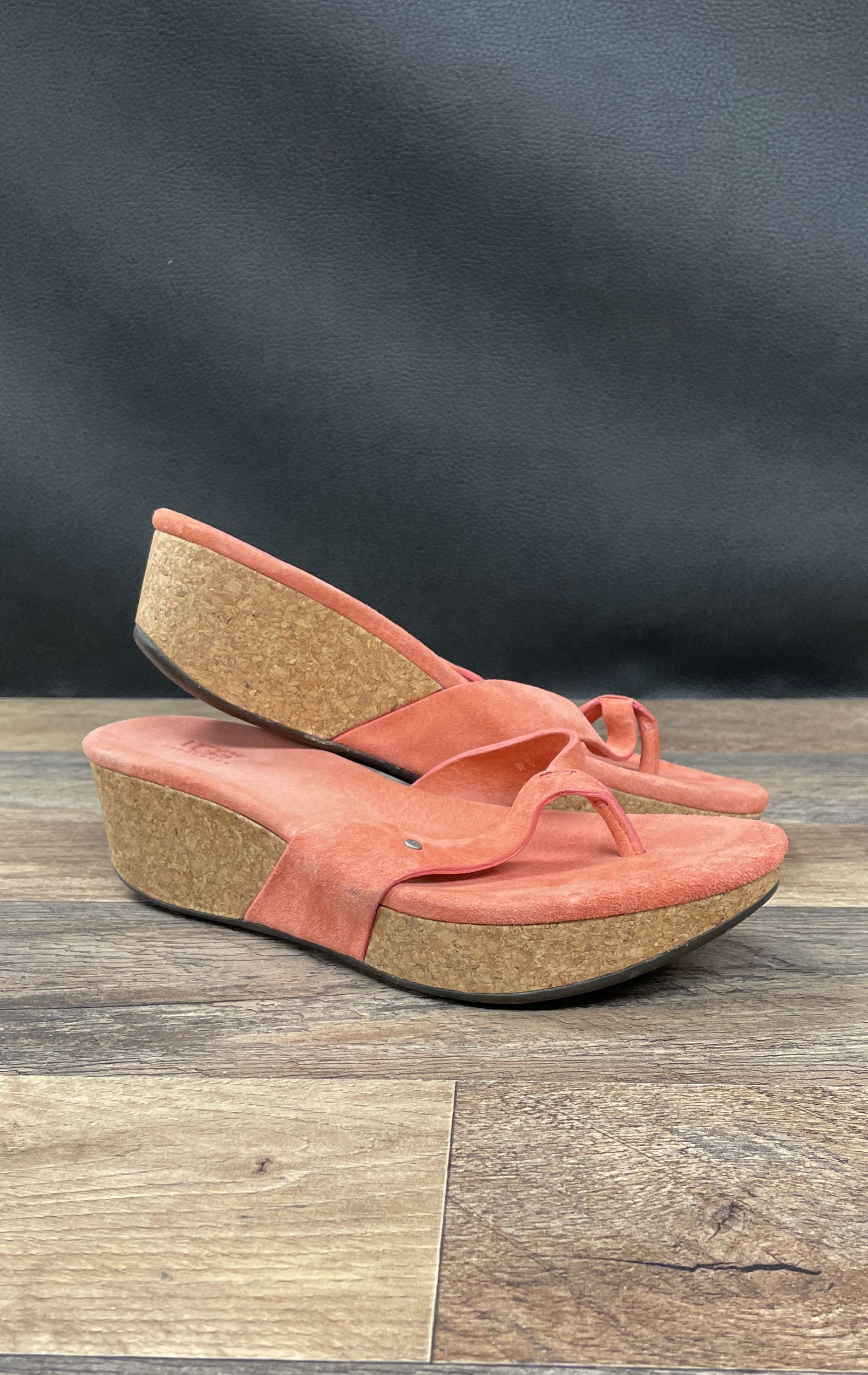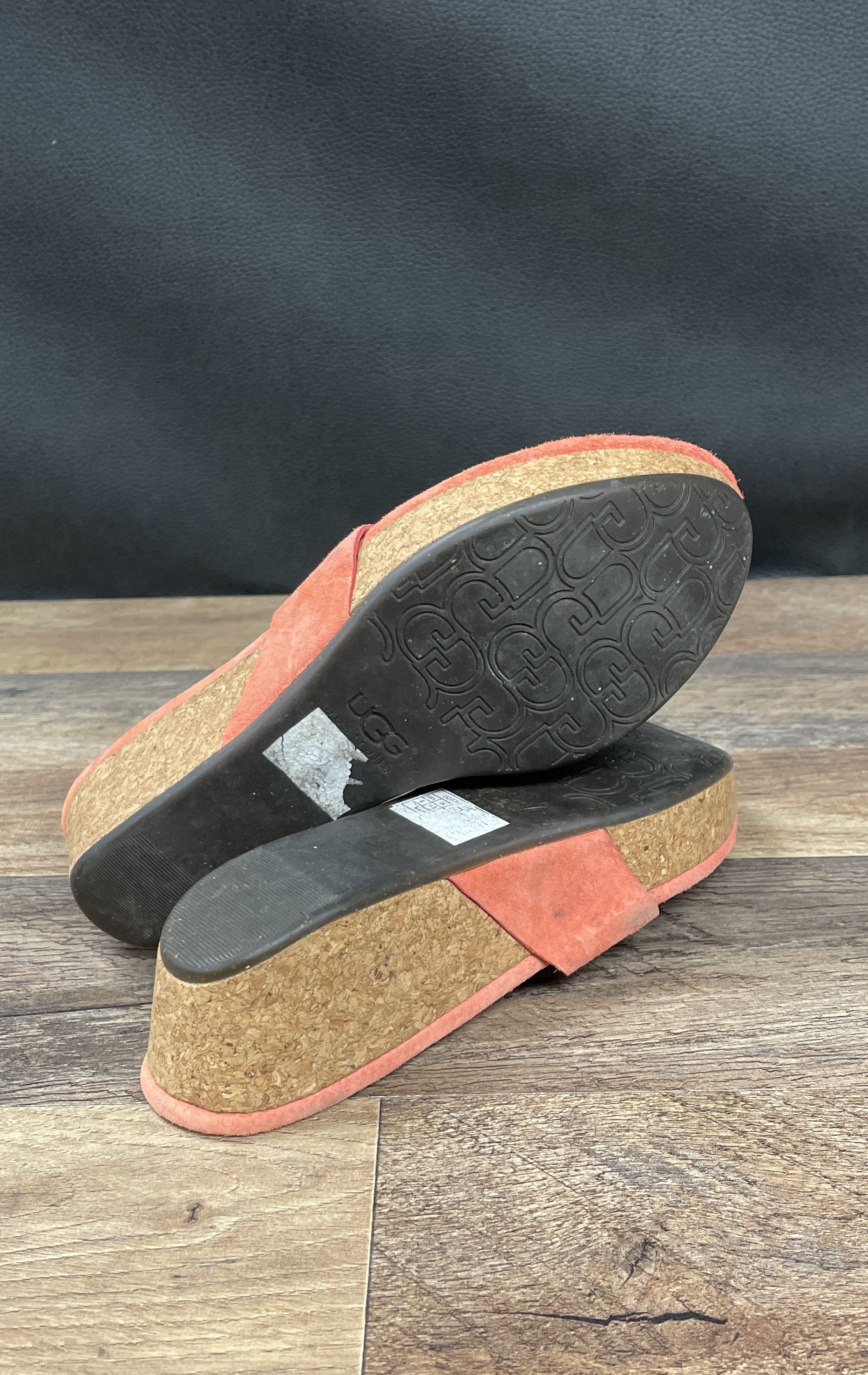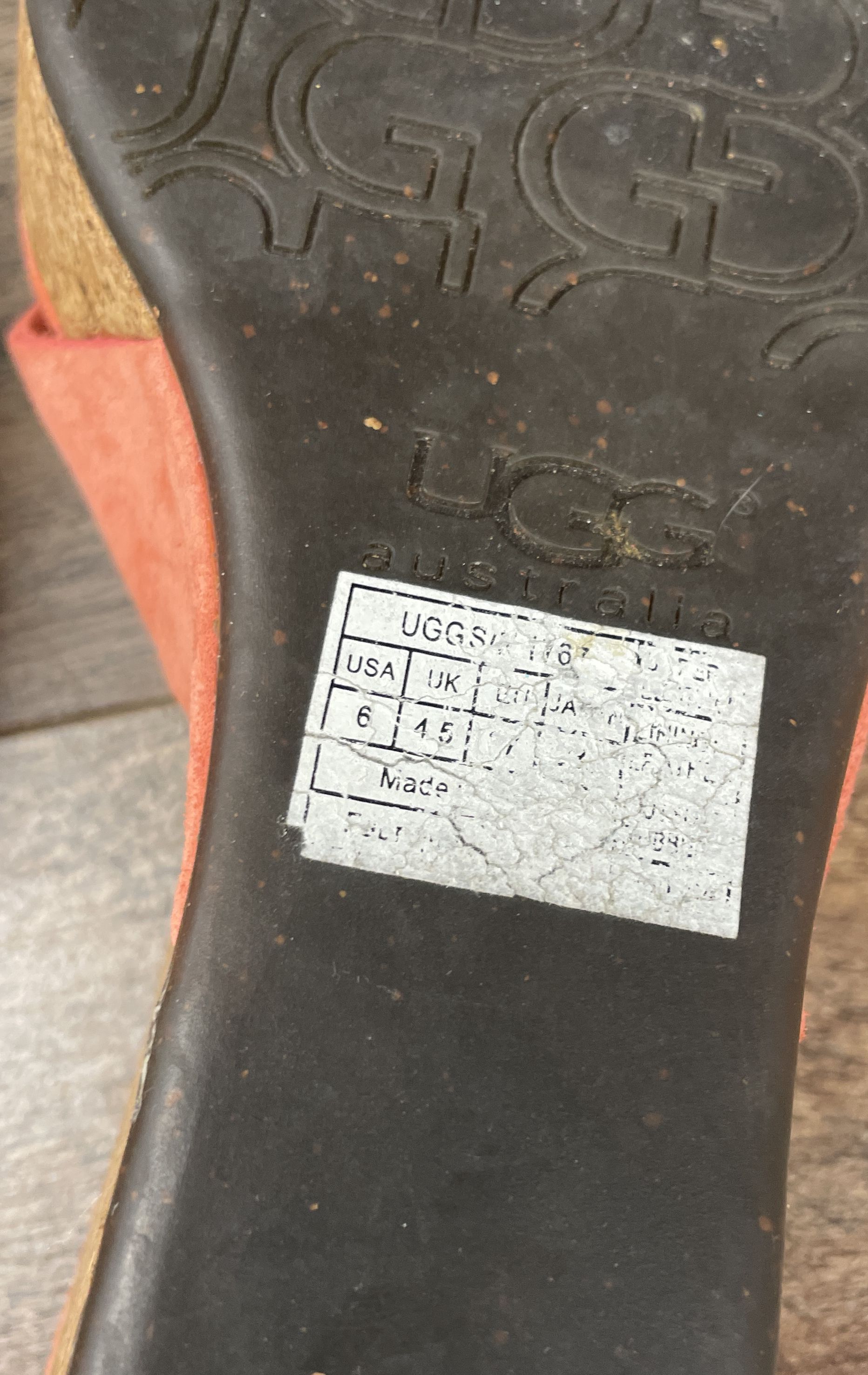 UGG Lucianna 1767 Coral Pink Suede Wedge Thong Sandals Women's Size 6