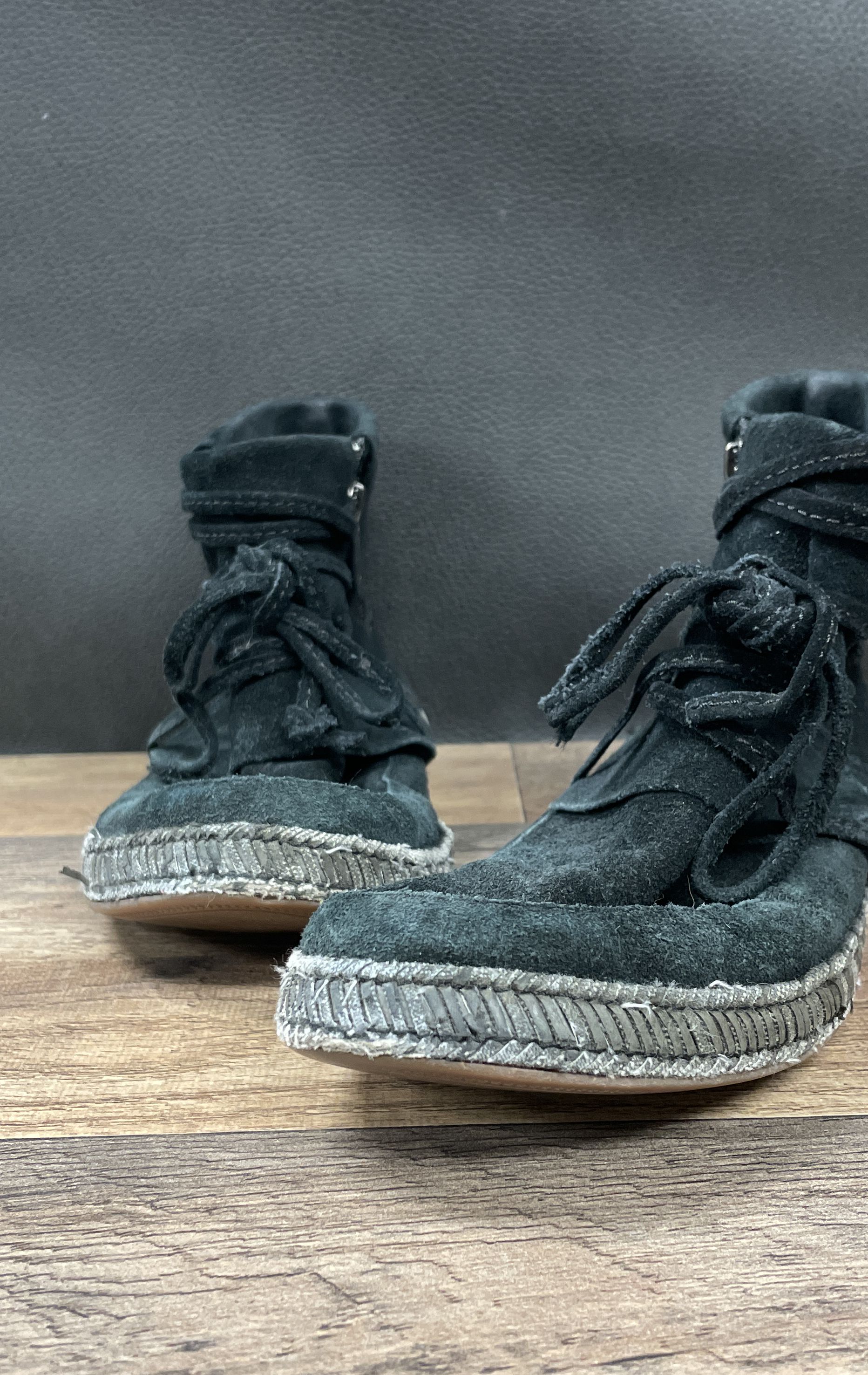 • Black suede upper with a fixed cuff and ankle-high silhouette