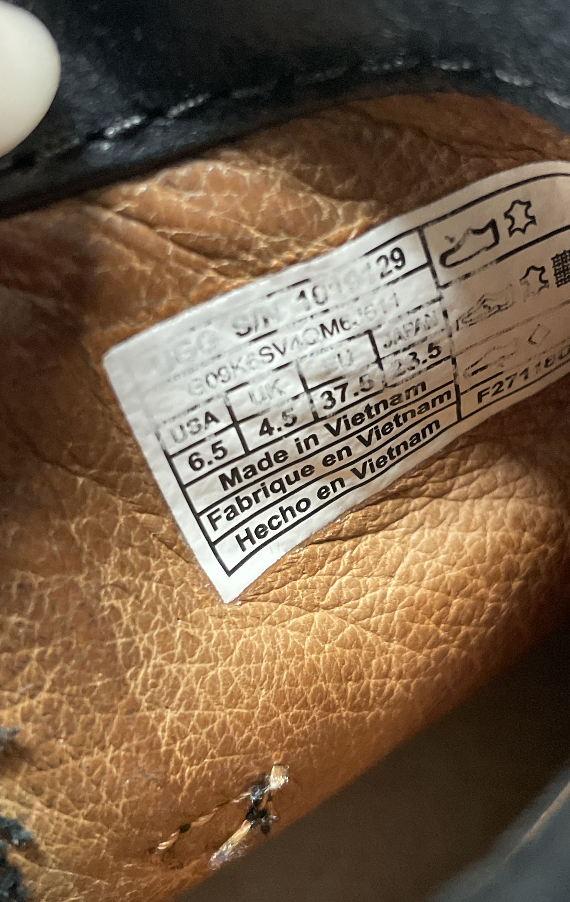 Condition: Good pre-owned condition with visible signs of regular use. The black suede uppers show some light scuffing and general wear. The woven detail along the sole edge shows some fraying and discoloration as pictured. Outsoles are in good shape with minimal tread wear.