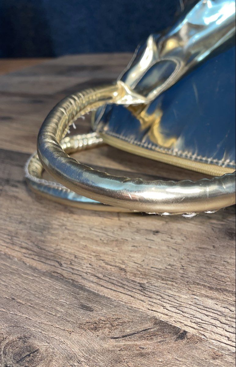 Ultra Chi Gold Metallic Top Handle Tote Bag Handbag with Crossbody Strap