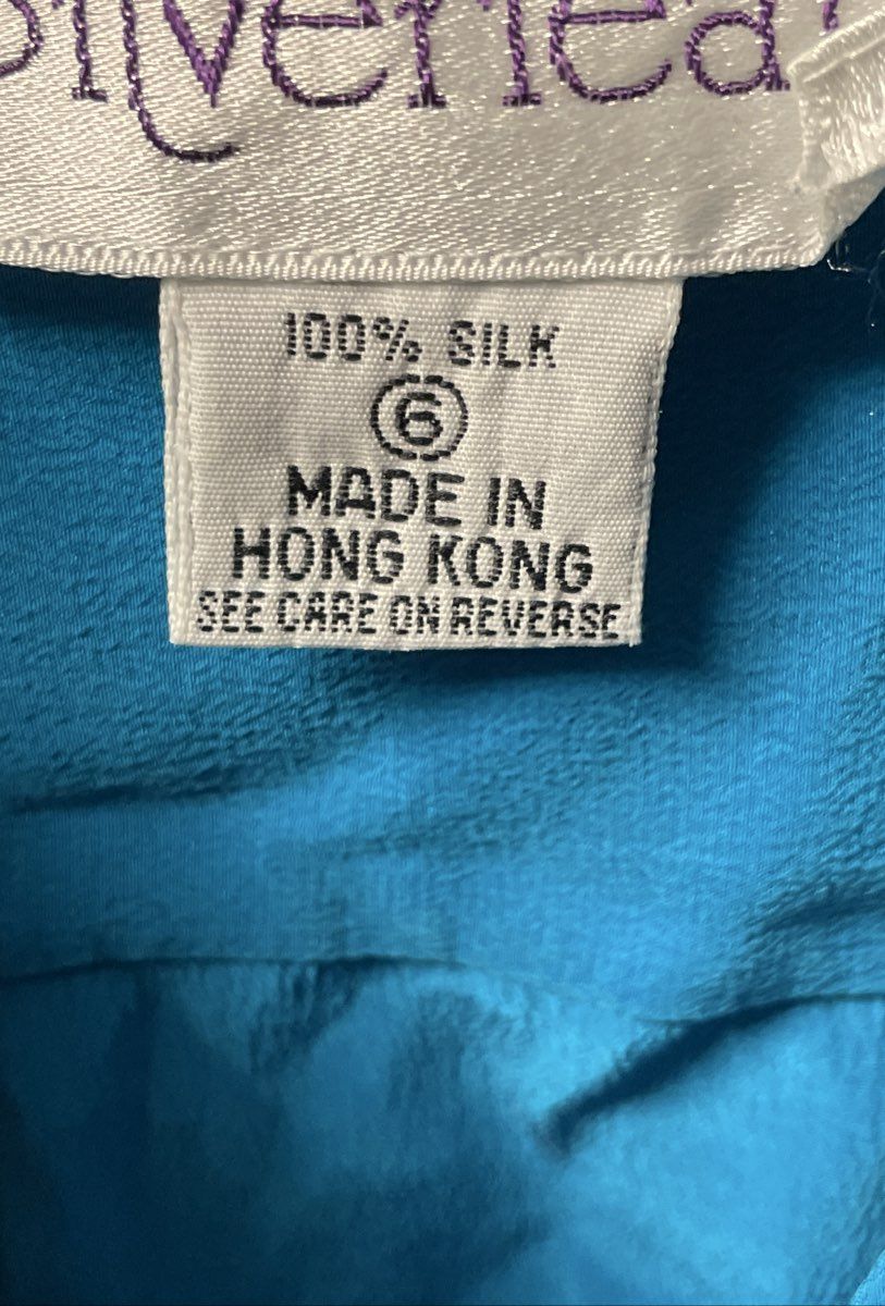 Vintage 80s Silverleaf Women's Teal 100% Silk Button Up Blouse Size 6