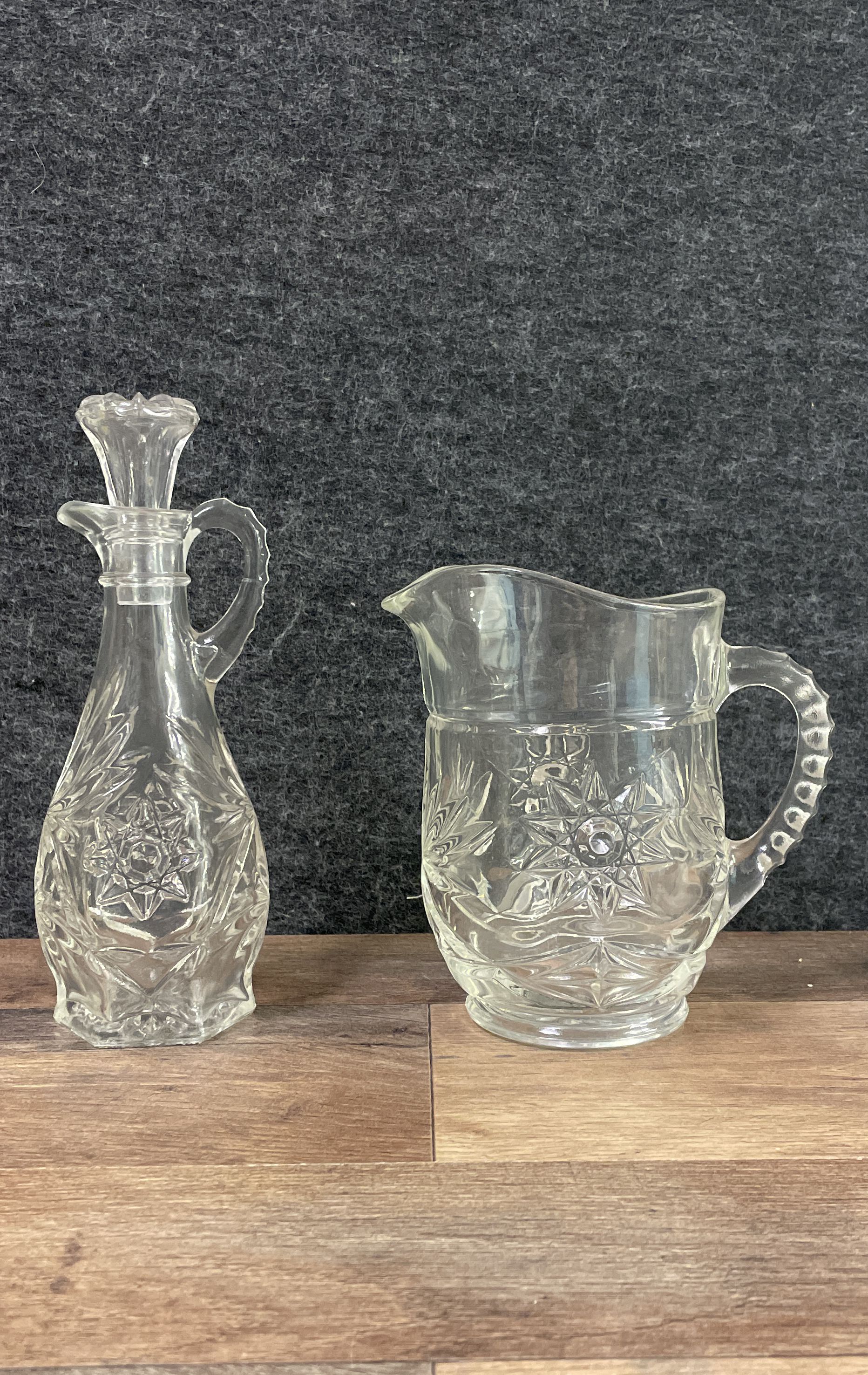 Vintage Imperial Glass Cape Cod Star of David Pitcher & Cruet Set of 2