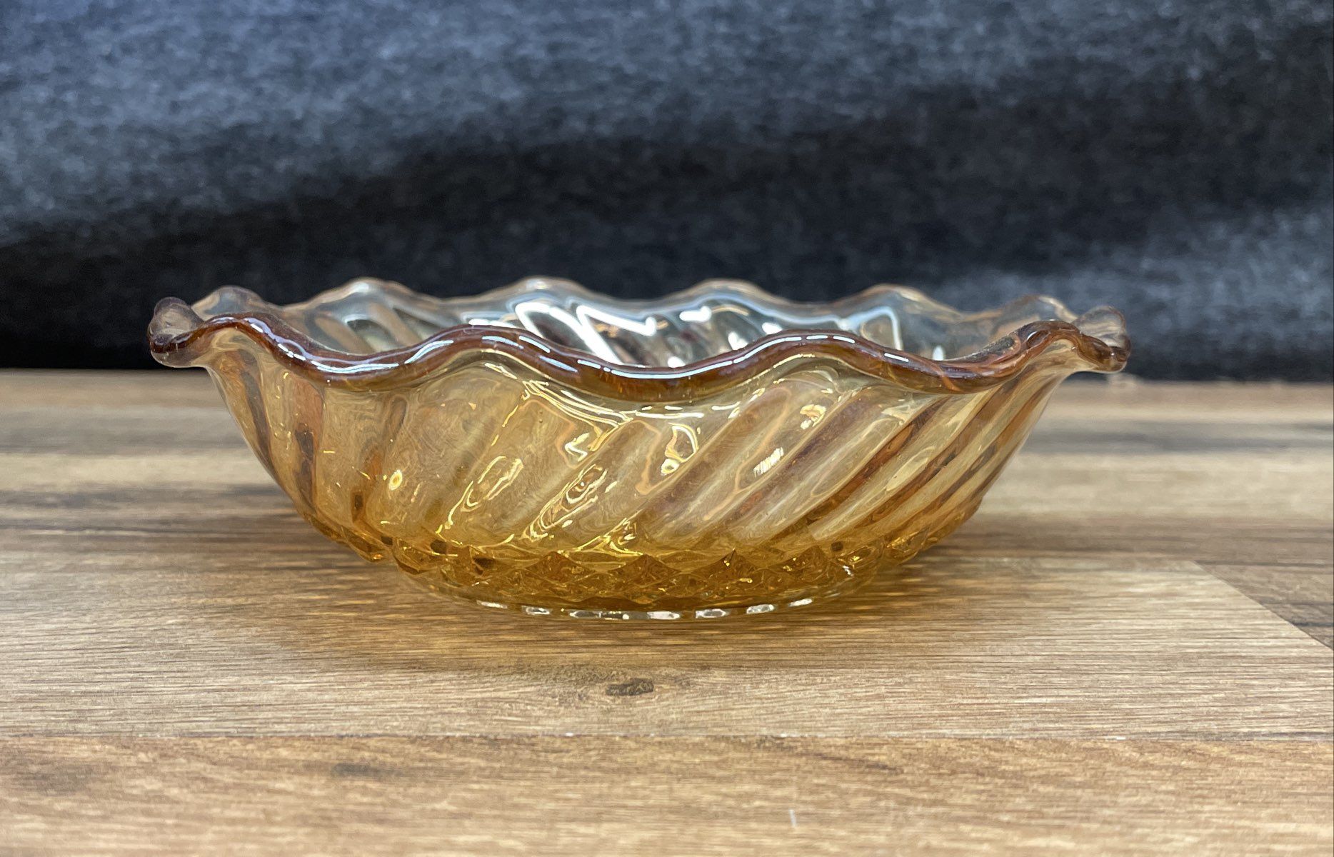 Vintage Jeannette Swirl Marigold Carnival Glass Ruffled Candy Bowl Dish
