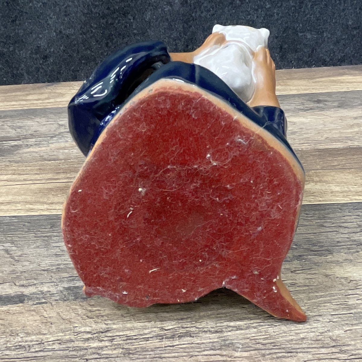 Condition: Used. Excellent vintage condition with vibrant, intact glaze. There are no visible chips or cracks. The piece shows minor signs of age, including a small scuff mark on the back of the head and light wear to the red flocking on the base. Overall, a well-preserved example of this collectible style.