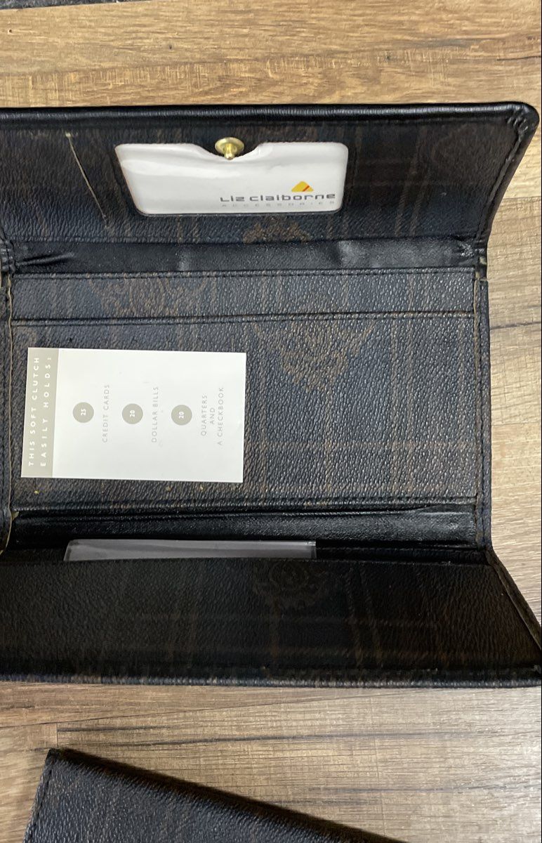 Vintage Y2K Liz Claiborne Black Brown Monogram Clutch Checkbook Wallet
