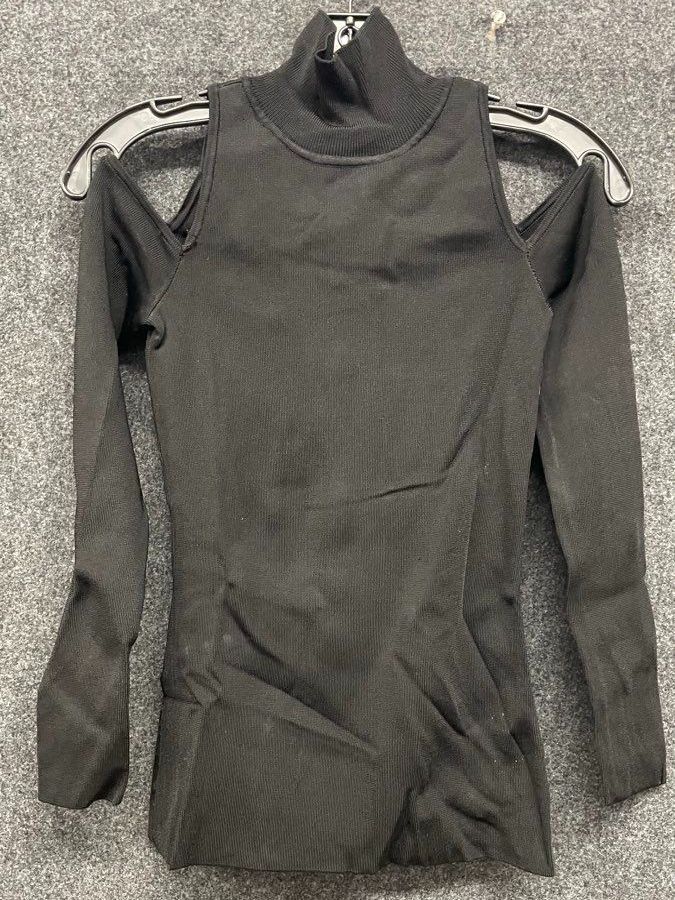 White House Black Market Women's Black Ribbed Cold Shoulder Mock Neck Top Sz XS