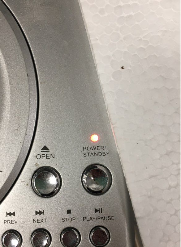 Condition: Excellent physical condition, appearing to have seen very little use. The player is clean and comes with its original styrofoam inserts inside the original retail box. The housing and controls are pristine. The box itself shows some signs of storage wear, including minor scuffs and softened corners. The player powers on, as evidenced by the illuminated standby light shown in photos.